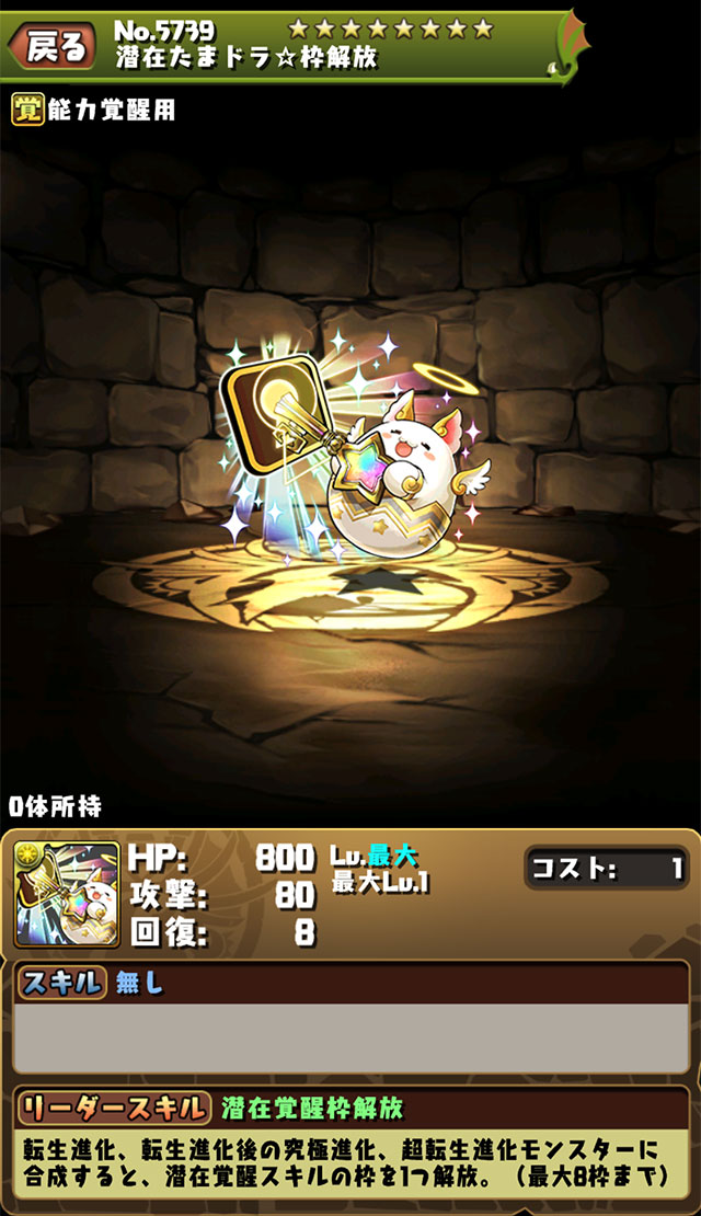新たに登場するモンスター「潜在たまドラ☆枠解放」を合成することで、7枠目、8枠目の潜在覚醒スキル枠を解放することが可能となります。