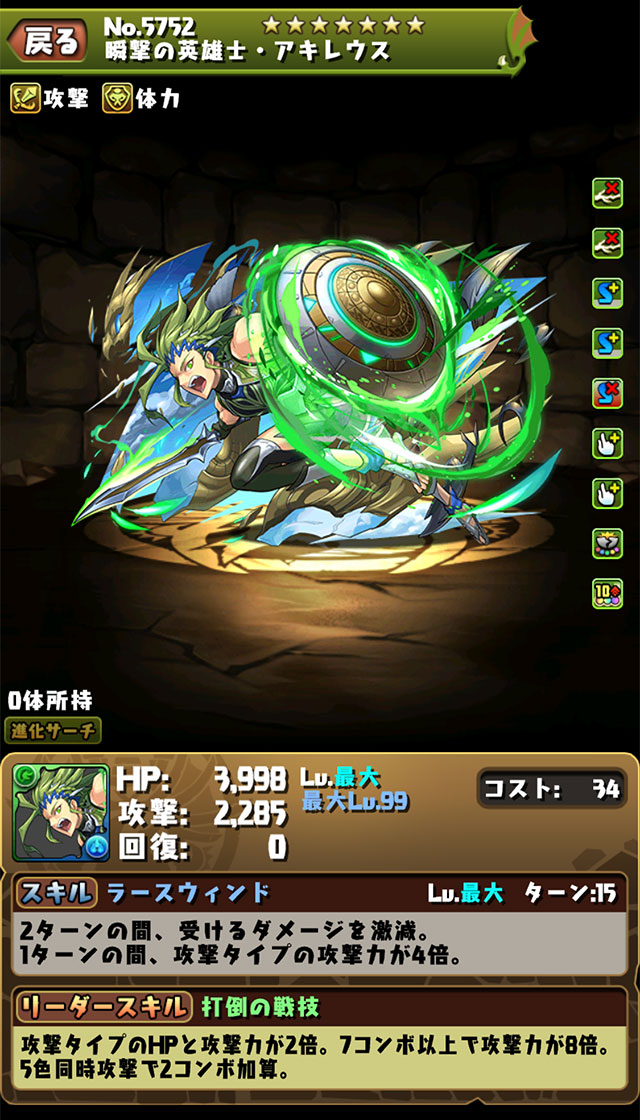 「瞬撃の英雄士・アキレウス」はレベル限界突破可能、超覚醒に対応しています。