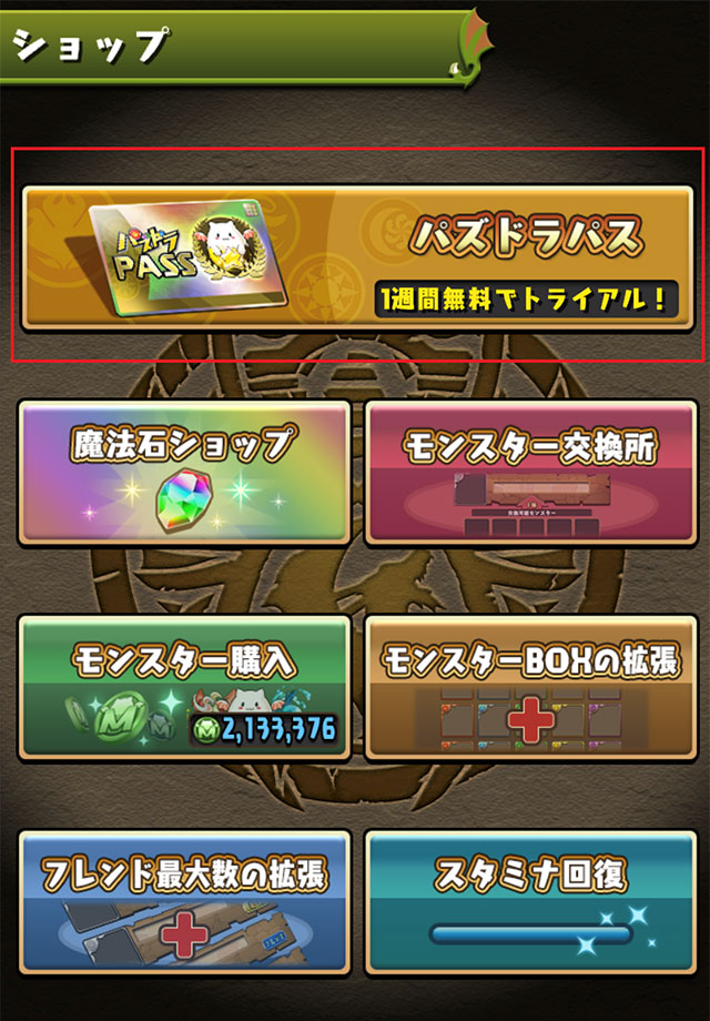 新たに月額有料サービス「パズドラパス」が追加されます。