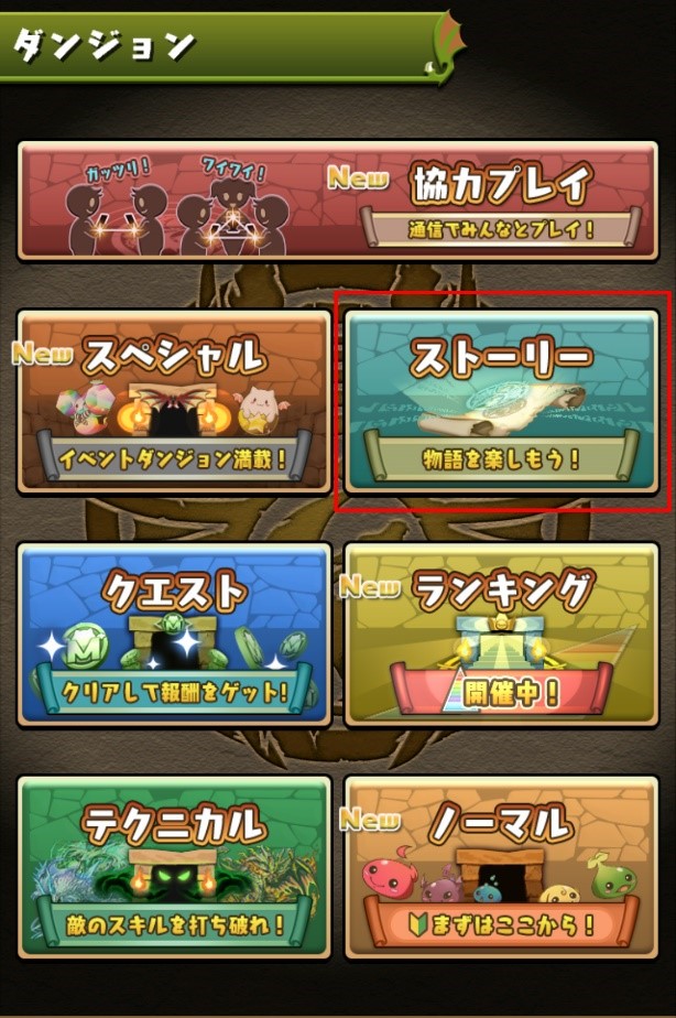 ※ランク20以上になると、ダンジョン内に「ストーリーダンジョン」が解放されます。
