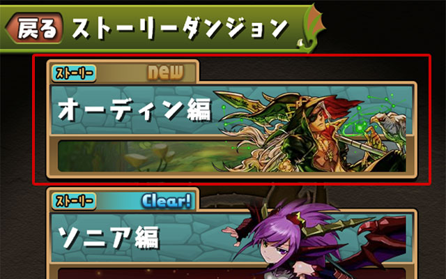 ※「オーディン編」は、ストーリーダンジョン「ソニア編」を全てクリアすると出現します。